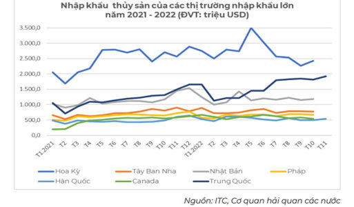 (TSVN) – Theo thống kê của ITC và cơ quan hải quan các quốc gia, 10 tháng đầu năm 2022, nhập khẩu thủy sản của hầu hết các thị trường lớn trên thế giới đều tăng trên 10% so cùng kỳ năm 2021, trừ nhập khẩu của Pháp chỉ tăng 5,2%. Cùng điểm tên 5 thị trường nhập khẩu thủy sản lớn nhất thế giới trong 10 tháng đầu năm 2022 và thị phần của Việt Nam.