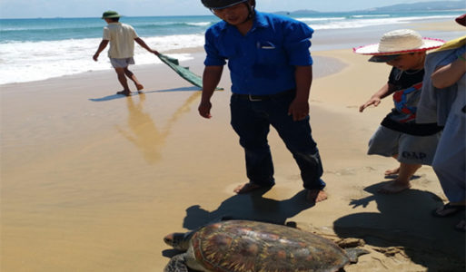 (TSVN) – Chi cục Thủy sản Bình Định vừa tiến hành thả một con rùa về lại biển. Cá thể rùa biển này là một loài Vích thuộc một trong 5 loài rùa biển quý hiếm nằm trong Sách đỏ Việt Nam cần được bảo vệ, bảo tồn.