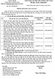 Ngày 25/3/2019, Trung tâm Dịch vụ đấu giá tài sản tỉnh Thừa Thiên Huế tổ chức đấu giá các tài sản theo thủ tục phá sản do Tòa án Nhân dân thị xã Hương Trà, tỉnh Thừa Thiên Huế chuyển giao…