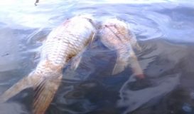 Ngày 18.2, nhiều loại cá chép, cá diếc, cá tràu và rô phi đã chết bất thường trên sông Bàn Thạch, đoạn chảy qua TP.Tam Kỳ.