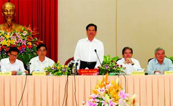 Vừa qua, Thủ tướng Nguyễn Tấn Dũng đã có buổi làm việc với lãnh đạo 3 tỉnh có sản lượng lúa và thủy sản lớn nhất vùng ĐBSCL là An Giang, Kiên Giang và Đồng Tháp về các giải pháp tháo gỡ khó khăn, thúc đẩy sản xuất, tiêu thụ nông sản (ảnh)