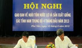 Ngày 10/5/2013, tại Phú Yên, Tổng cục Thuỷ sản đã phối hợp với Sở Nông nghiệp và Phát triển nông thôn Phú Yên tổ chức Hội nghị giao ban về nuôi tôm nước lợ và sản xuất giống thủy sản các tỉnh Nam Trung Bộ. Ông Nguyễn Huy Điền (Phó Tổng cục trưởng Tổng cục Thuỷ sản) và ông Biện Minh Tâm (Giám đốc Sở) đồng chủ trì Hội nghị.