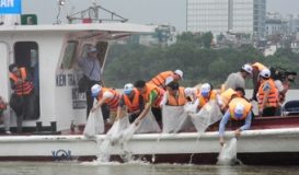 Sáng 28/5, Tổng cục Thủy sản Trung ương Giáo hội Phật giáo Việt Nam đã tổ chức lễ thả cá phóng sinh, tái tạo nguồn lợi thủy sản tại chùa Bồ Đề (Hà Nội).