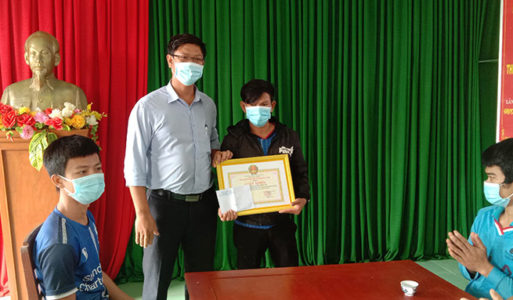 (TSVN) – Sáng ngày 14/12, UBND huyện đảo Lý Sơn đã trao tặng bằng khen cho tập thể tàu cá QNg-98813 TS do ngư dân Trần Anh Dũng (sinh năm 1990, xã Phổ Châu, thị xã Đức Phổ, tỉnh Quảng Ngãi) làm thuyền trưởng, đã kịp thời cứu 15 ngư dân trên tàu cá QNg-96138 TS bị chết máy, trôi dạt trên biển.