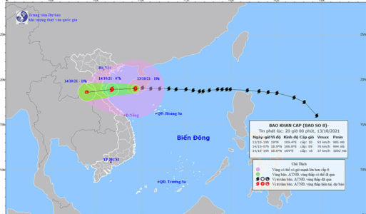 Hồi 13 giờ ngày 13/10, vị trí tâm bão ở khoảng 19,0 độ Vĩ Bắc; 111,1 độ Kinh Đông, trên vùng biển phía Đông đảo Hải Nam (Trung Quốc), cách Thanh Hóa khoảng 600 km, cách Nghệ An khoảng 610 km, cách Hà Tĩnh khoảng 540 km. Sức gió mạnh nhất vùng gần tâm bão mạnh cấp 11 (100 – 120 km/giờ), giật cấp 14. Bán kính gió mạnh từ cấp 6, giật từ cấp 8 trở lên khoảng 350 km tính từ tâm bão.