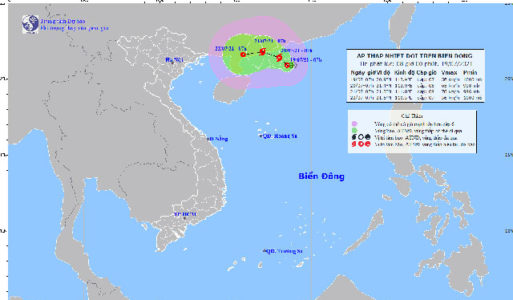 Hồi 07 giờ ngày 19/7, vị trí tâm áp thấp nhiệt đới ở vào khoảng 20,9 độ Vĩ Bắc; 113,4 độ Kinh Đông, cách Hồng Kông (Trung Quốc) khoảng 180 km về phía Nam Tây Nam. Sức gió mạnh nhất vùng gần tâm áp thấp nhiệt đới mạnh cấp 7 (50 – 60 km/giờ), giật cấp 9. Bán kính gió mạnh cấp 6, giật cấp 8 khoảng 100 km tính từ tâm áp thấp nhiệt đới.