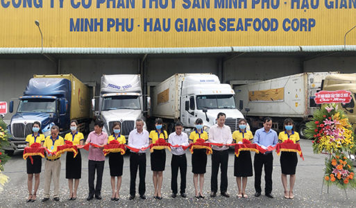 (TSVN) – Sáng 5/1/2021, Bộ NN&PTNT cùng UBND tỉnh Hậu Giang làm lễ xuất khẩu lô hàng tôm đầu năm 2021 đi EU, Mỹ của Tập đoàn Thủy sản Minh Phú, tại Khu công nghiệp Sông Hậu (Châu Thành, Hậu Giang). Cùng dự có đại diện Bộ Công thương, lãnh đạo nhiều địa phương ĐBSCL và các doanh nghiệp.