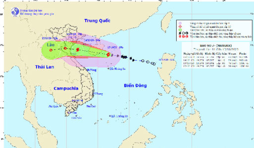 Bão số 7 đang áp sát đảo Hải Nam (Trung Quốc), dự báo tiếp tục mạnh thêm và đi vào đất liền các tỉnh từ Thái Bình đến Nghệ An vào khoảng chiều mai (14/10).