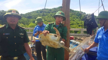 Sáng 15-7, Ban Quản lý các cảng cá tỉnh Hà Tĩnh đã phối hợp với Đồn Biên phòng Cửa Sót, BĐBP Hà Tĩnh, Chi cục Thủy sản và Chi cục Kiểm lâm tỉnh tiến hành thả cá thể rùa biển quý hiếm có trọng lượng gần 18kg, chiều dài 60 cm, chiều rộng 40 cm vẫn còn khỏe mạnh bình thường về với môi trường tự nhiên tại vùng biển Cửa Sót, huyện Lộc Hà, tỉnh Hà Tĩnh.