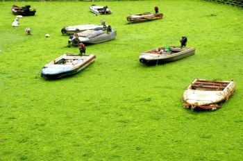 Hỏi: Ao nuôi cá không có nước ra vào thường xuyên, trên ao có màng xanh màu rêu. Hỏi nguyên nhân và cách khắc phục?