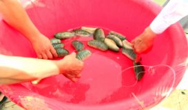 Huyện Mộ Đức, tỉnh Quảng Ngãi đang thí điểm mô hình nuôi ghép hải sâm và ốc hương, ứng dụng khoa học kỹ thuật mới, nhằm đa dạng hóa đối tượng nuôi, nâng cao trình độ nuôi trồng thủy sản cho người dân vùng ven biển, tối đa và tận dụng nguồn thức ăn, giảm dịch bệnh, nâng cao thu nhập.