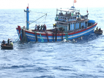 Hiện nay tàu cá BĐ 95786 TS đang đưa 2 người nước ngoài vào bờ, dự kiến trong ngày 16/1, sẽ về đến Tam Quan (huyện Hoài Nhơn).
