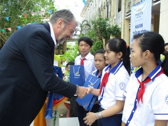 Thực hiện chương trình “Mavin tiếp bước đến trường”, nhân dịp Lễ Khai giảng năm học mới 2018 – 2019, Tập đoàn Mavin đã trao tặng 300 phần quà cho 300 học sinh nghèo, học giỏi của Trường THCS Cái Tàu Hạ, huyện Châu Thành, Đồng Tháp.
