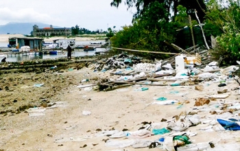 Những ngày vừa qua, các phương tiện lưu thông trên tuyến đường từ sân bay Cam Ranh ra Quốc lộ 1, khi đến khu vực đầm Thủy Triều đều thấy rác thải tràn ngập nơi đây bốc mùi hôi thối nồng nặc.