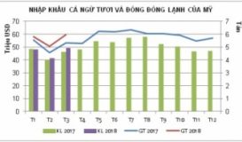 Tiếp tục xu hướng tích cực trong những tháng cuối năm 2017, NK cá ngừ tươi và đông lạnh của Mỹ quý đầu năm 2018 vẫn tiếp tục tăng 3% về khối lượng và 9% về giá trị so với cùng kỳ năm 2017.