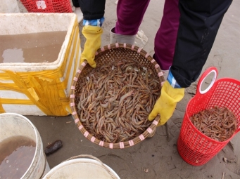 Thời tiết thuận lợi nên nhiều bà con ở xã Hải Triều (huyện Hải Hậu, tỉnh Nam Định) liên tục trúng đậm tôm biển.