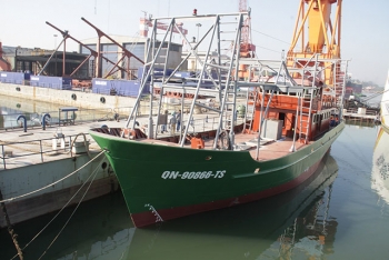 Sau nhiều ngày đánh bắt trên biển, một tàu vỏ thép đóng theo Nghị định 67 ở xã Quỳnh Long, huyện Quỳnh Lưu cấp bến với 5 tấn cá hố.