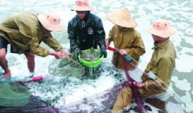 Từ ngày 9.2 (mùng 2 Tết) cho đến nay, cả trăm thuyền thúng, thuyền máy của ngư dân xã Nhơn Lý, TP.Quy Nhơn (Bình Định) ra khơi đánh bắt tôm hùm giống.