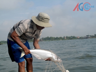 Mấy ngày qua, trên sông Vàm Nao và khu vực sông Hậu, ngư dân bắt dính nhiều cá bông lau.