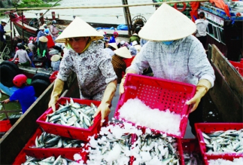 Những con thuyền đầy ắp cá vừa cập bến Sa Kỳ, xã Bình Châu, Quảng Ngãi vào sáng 1/9 để kịp xuất cá và trở về nhà đúng dịp lễ Quốc khánh.