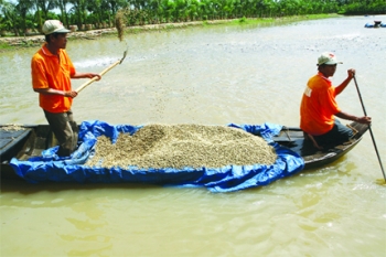 Thu hoạch tôm là công việc rất vất vả vì phải ngâm mình lâu dưới nước, thời gian làm việc không ổn định, bất kể trời nắng hay mưa, dù là giữa đêm khuya lạnh hay giữa trưa nắng nóng, khi có việc là họ có mặt.