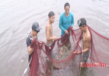 Hiện nay, hơn 3,3 ha tôm nuôi trên địa bàn Diễn Châu đã xuất hiện bệnh. Một số đầm, tôm chết nhiều nên phải thu hoạch sớm.