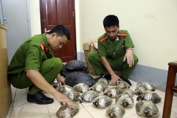 Phát hiện Công an truy đuổi, đối tượng liền bỏ lại thùng hàng rồi tăng ga bỏ chạy. Bên trong thùng hàng bị bỏ lại có 26 cá thể rùa còn sống.