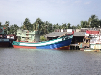 Trong đợt về nghỉ Tết Nguyên đán Ất Mùi 2015, nhiều tàu đánh bắt cá có màu sơn khác thường, mang biển số lạ về neo đậu tại cảng cá Tắc Cậu (Châu Thành, Kiên Giang).