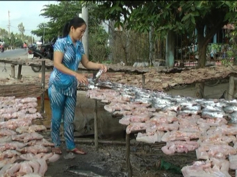 Làng nghề làm khô cá lóc ở xã Phú Thọ, huyện Tam Nông, tỉnh Đồng Tháp đang tất bật làm ra sản phẩm cung cấp cho thị trường.