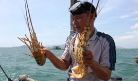 Hiện giá tôm hùm thương phẩm tại Khánh Hòa được thương lái thu mua với mức từ 1,6 – 1,7 triệu đồng/kg (tôm hùm sao) và từ 900.000 – 910.000 đồng/kg (tôm hùm xanh), không tăng so với tháng trước.