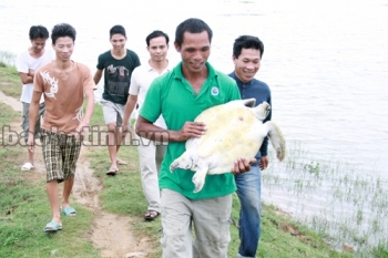 Sáng 26/10, Phòng NN&PTNT huyện Nghi Xuân cùng với người dân xã Xuân Trường tiến hành thả một con rùa biển nặng hơn 10kg sau khi trôi dạt vào bờ.