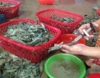 Nhận được tin báo, lúc 10h20 ngày 24/7/2014, đội Quản lý thị trường số 4 kiểm tra cơ sở làm tôm của ông Đinh Hữu Điền (ấp Sơn Đông, xã Thanh Đức- Long Hồ) phát hiện hơn 30 nhân viên đang trực tiếp bơm tạp chất (gồm thạch rau câu và một bịch bột màu trắng không nhãn mác) vào tôm để tăng trọng lượng.