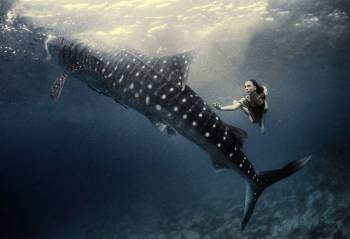 Sau khi thực hiện bộ ảnh khiêu vũ với cá mập hổ ngoài khơi Bahamas, Đại Tây Dương mà không cần bất cứ thiết bị hỗ trợ lặn hoặc bảo vệ an toàn nào, người mẫu Hannah Fraser tiếp tục hợp tác với nhiếp ảnh gia Shawn Heinrichs và Kristian Schmidt thực hiện bộ ảnh khiêu vũ với cá mập voi ở Oslob,Philippines.