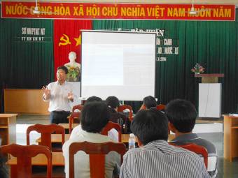 Lớp tập huấn do Trạm Khuyến nông huyện Thanh Oai tổ chức nhằm chuyển giao khoa học kỹ thuật nuôi trồng thủy sản (NTTS) an toàn sinh học cho 30 chủ trang trại xã Cao Dương.