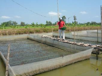 Chúng tôi theo chiếc xuồng máy chở thức ăn, thăm các bè cá bớp ở bãi trước Mũi Né (Phan Thiết).