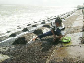 Những ngày này tại bờ kè biển Cửa Đại (Hội An, Quảng Nam) người dân tranh thủ ra cạo rong biển, món quà từ biển cả sau bao biến động của thiên nhiên.