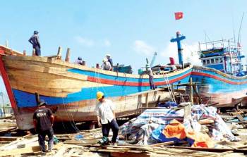Hàng trăm tàu cá ở xã Phổ Thạnh (Đức Phổ, Quảng Ngãi) sau một mùa đánh bắt đối mặt với sóng gió ở biển khơi, giờ được đưa lên triền đà để tu sửa, nâng cấp, chuẩn bị vào mùa biển mới. Ngư dân gọi, đây là mùa “làm nước” cho tàu.