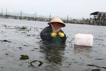 Băng qua con đường đầy vỏ sò, vỏ ốc, nhập vào tốp người đang đi về bãi triều Cồn Chiêm (TP. Cam Ranh, Khánh Hòa) để đào gáo, mò sò bán làm thức ăn cho tôm hùm…, chúng tôi mới phần nào hiểu được những vất vả trong cuộc mưu sinh của họ.