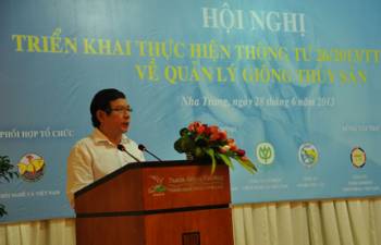 Ngày 28/6/2013 tại TP Nha Trang (Khánh Hòa), Tổng cục Thủy sản phối hợp với Hội Nghề cá Việt Nam tổ chức Hội thảo Triển khai thực hiện Thông tư 26/2013/TT-BNNPTNT về Quản lý giống thủy sản. Ông Nguyễn Huy Điền, Phó Tổng cục trưởng Tổng cục Thủy sản chủ trì.