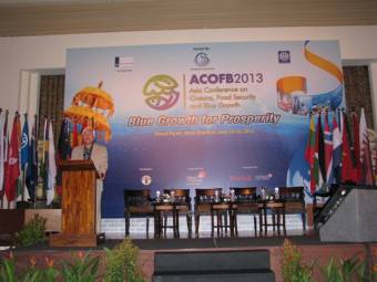 Gần 400 đại biểu đại diện các quốc gia biển, ven biển và quốc đảo ở châu Á và các chuyên gia thuộc các tổ chức quốc tế và khu vực tham dự và góp ý kiến tại Hội nghị châu Á về Đại dương, An ninh thực phẩm và Tăng trưởng xanh (ACOFB 2013) diễn ra từ 18 – 21/06/2013, tại Bali, Indonesia.