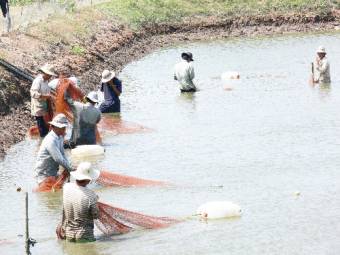 Trong khoảng 2.000 tấn tôm thương phẩm trong vụ nuôi năm 2013 ở Trà Vinh, có tới hơn 1.200 tấn buộc người nuôi phải thu hoạch sớm khoảng 2-2,5 tháng do lo ngại dịch bệnh.