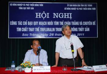(Thủy sản Việt Nam) – Ngày 26/4/2011, tại tỉnh Sóc Trăng, Tổng cục Thủy sản đã tổ chức Hội nghị “Bàn công tác chỉ đạo quy hoạch nuôi tôm thẻ chân trắng và chuyên đề tìm chất thay thế Trifluralin trong nuôi trồng thủy sản”. Đến dự có ông Phạm Anh Tuấn, Phó Tổng cục trưởng thường trực Thủy sản.