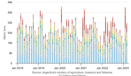 (TSVN) – Ngành thủy sản của Argentina đã xuất khẩu tổng cộng 129.131 tấn thủy sản, trị giá 471 triệu USD trong quý đầu tiên của năm 2023, tăng 15,5% về khối lượng và 14,8% về giá trị so với cùng kỳ năm 2022, theo dữ liệu do Bộ Nông nghiệp, Chăn nuôi và Thủy sản Argentina công bố.