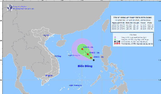Hồi 13 giờ ngày 28/6, vị trí trung tâm vùng áp thấp ở vào khoảng 15,1 – 16,1 độ Vĩ Bắc; 116,8-117,8 độ Kinh Đông, cách quần đảo Hoàng Sa khoảng 650 km về phía Đông Đông Nam.
