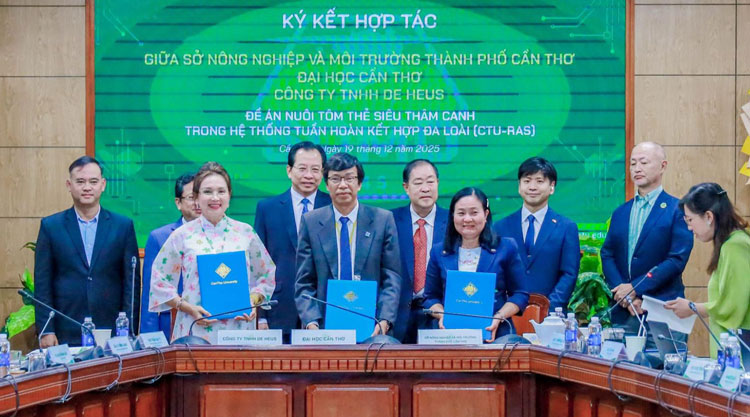 Đại học Cần Thơ ký kết hợp tác cùng Sở NN&MT thành phố Cần Thơ và Công ty TNHH De Heus về triển khai Đề án Nuôi tôm siêu thâm canh trong hệ thống tuần hoàn kết hợp đa loài – CTU-RAS