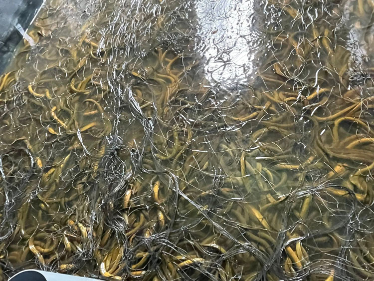 Lươn nuôi trong bể lót bạt sinh trưởng, phát triển tốt