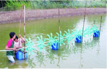 Để hoạt động quạt tạo ôxy trong ao nuôi tôm, cần sử dụng thuyền phao được cấu thành từ phao, con lăn, cục trượt, cầu phao. Đây cũng là những sản phẩm của Công ty TNHH SX&TMDV Nghĩa Phát.
