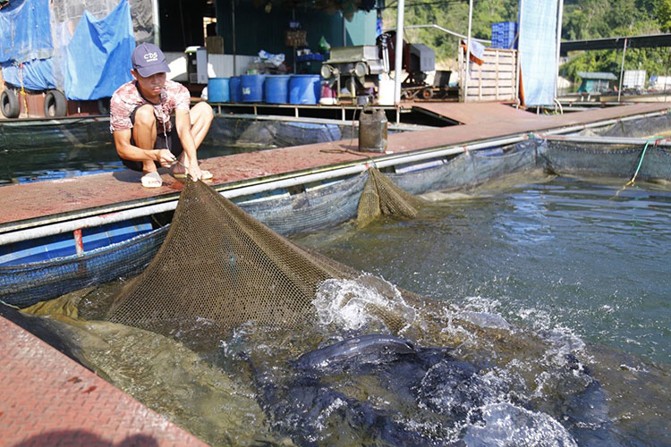 Nghề nuôi cá lồng trên sông, hồ mang lại hiệu quả kinh tế cao cho người dân ở Tuyên Quang. Ảnh: ĐNTQ