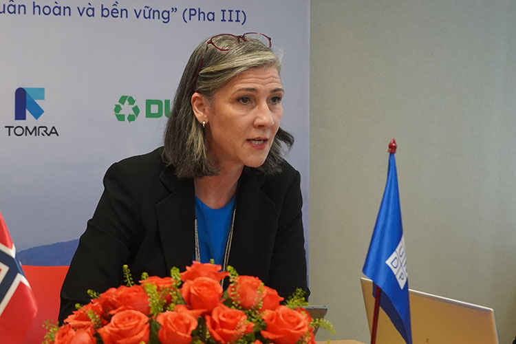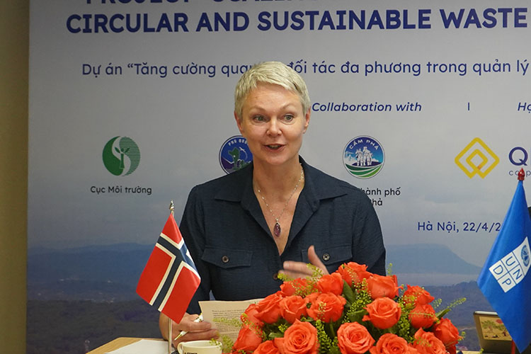 Bà Hilde Solbakken, Đại sứ Na Uy tại Việt Nam, khẳng định: “Na Uy đặt ưu tiên cao cho việc chống ô nhiễm nhựa đại dương, nhấn mạnh tầm quan trọng của việc quản lý chất thải bền vững. Chúng tôi rất vinh dự được hợp tác chặt chẽ với UNDP, Cục Môi trường, các cơ quan hữu quan của các tỉnh Quảng Ninh và Kiên Giang, cũng như khu vực tư nhân để thực hiện Dự án này. Quan hệ đối tác công tư có tác dụng kết hợp sức mạnh và nguồn lực của cả hai khu vực, tạo ra các giải pháp sáng tạo và đem lại những tác động có thể nhân rộng. Vì thế sự tham gia của công ty Xi măng Lam Thạch và công ty TOMRA của Na Uy là minh chứng cho sức mạnh quan hệ đối tác này trong việc thúc đẩy thay đổi bền vững và đạt được các mục tiêu chung của chúng ta.”