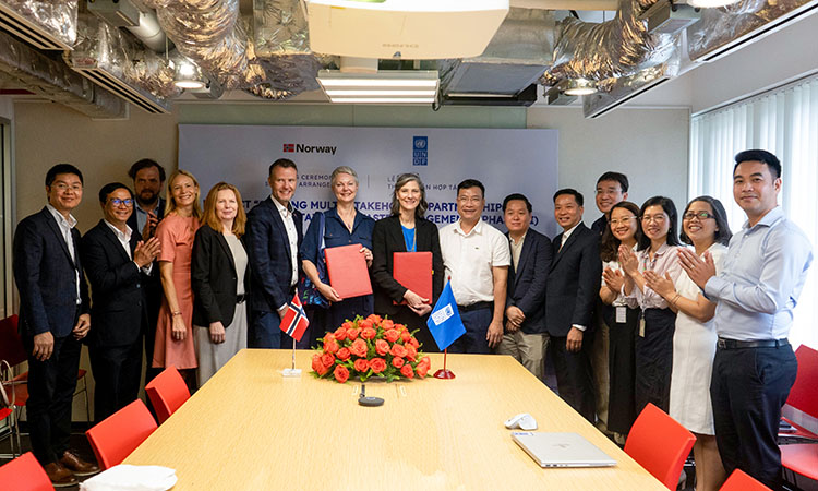 Đại diện các bên thực hiện ký kết. Ảnh: UNDP